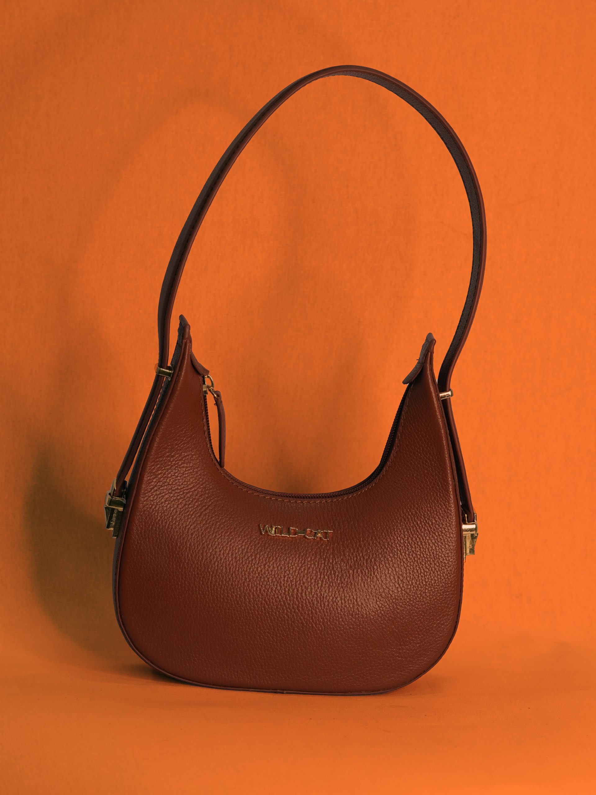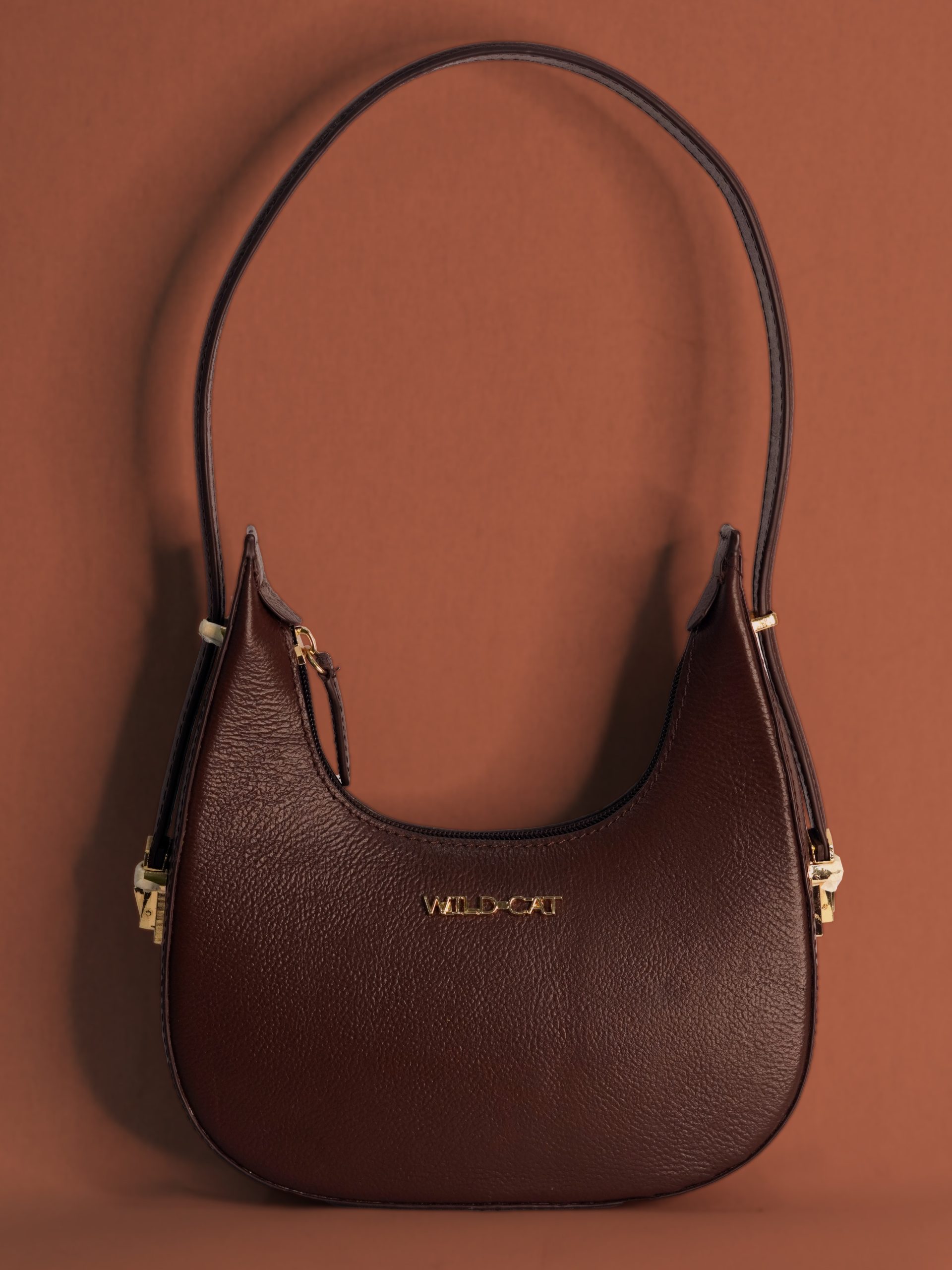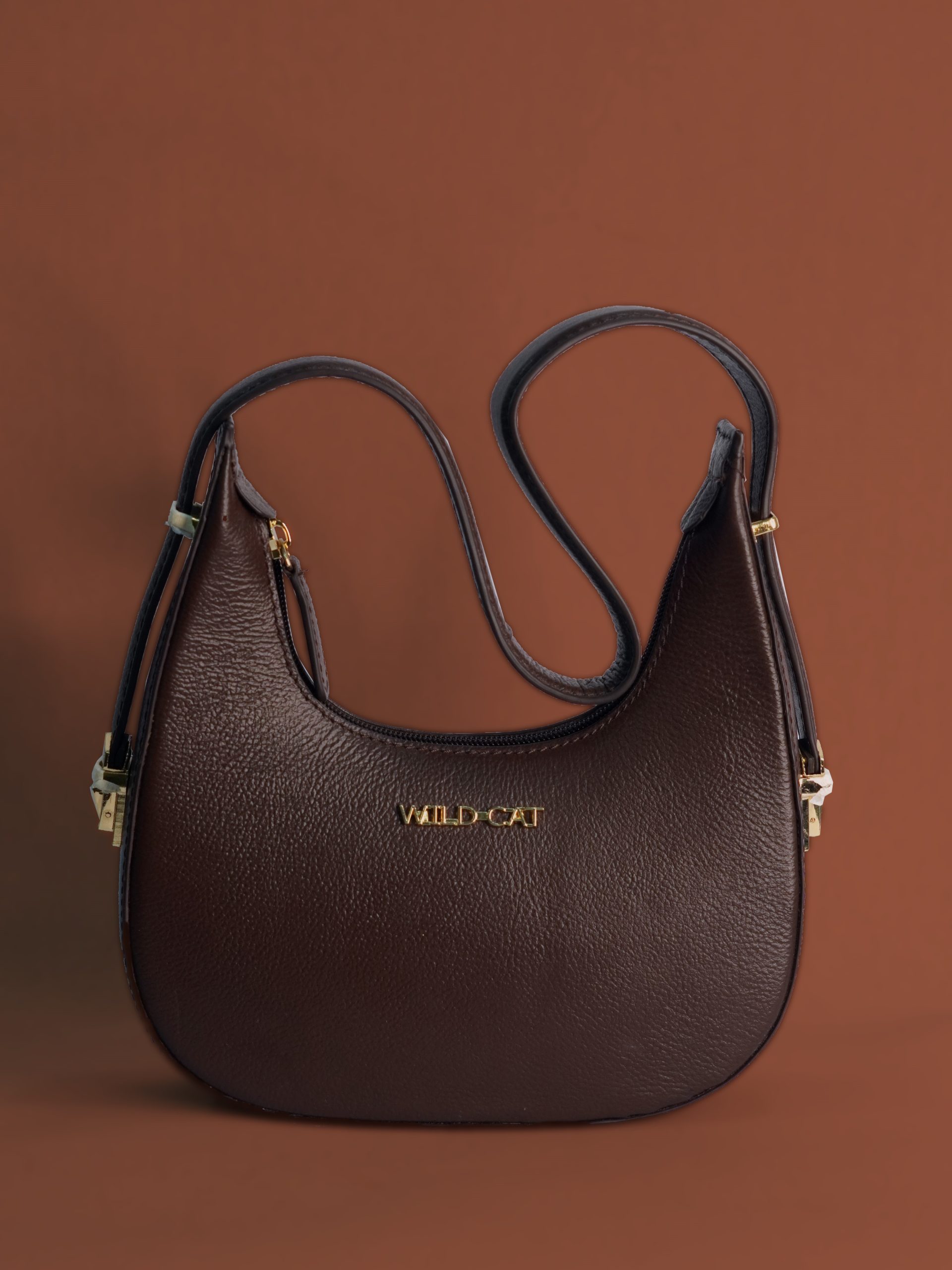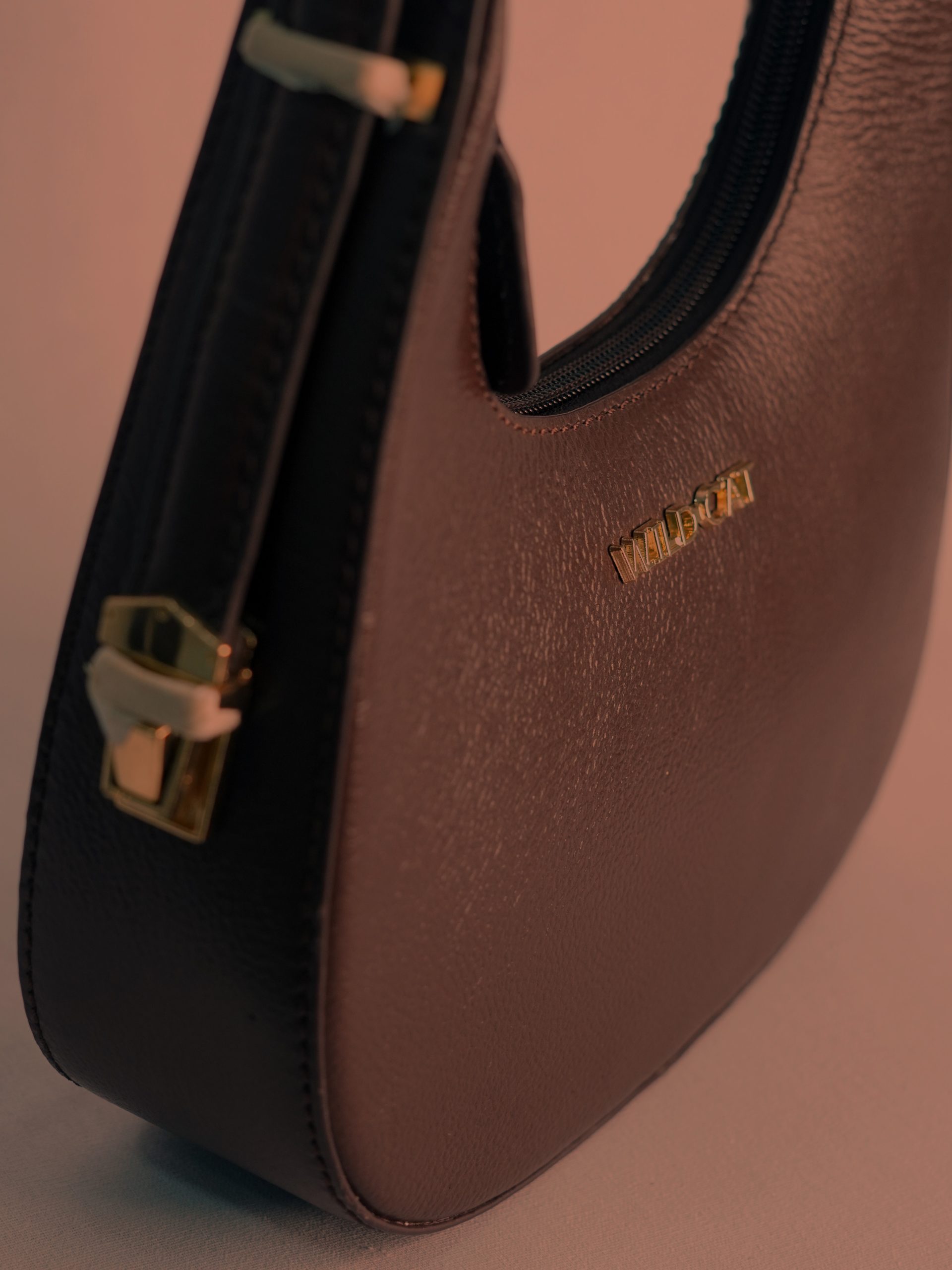 Hardware: Gold-tone metal hardware, including the "WILD CAT" logo and zipper pull.